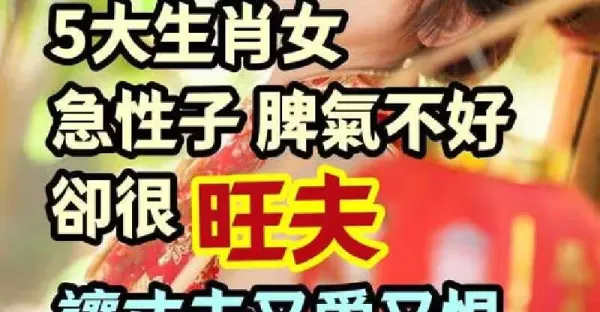 嫁誰都能富貴!急性子的5大生肖女,脾氣不好卻很「旺夫」讓丈夫又愛又恨