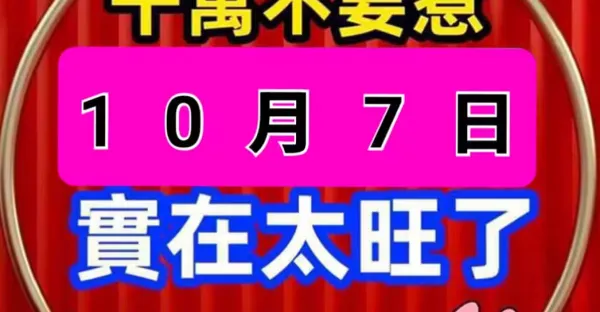 明天「 10月7號 」 美好的一天 三生肖 橫財最旺!
