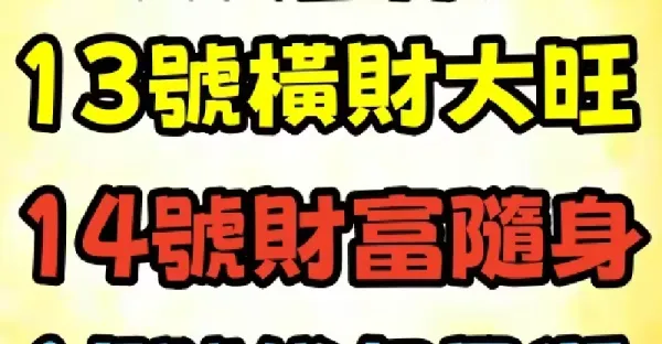明天 10月14號 「 三生肖 」 橫財最旺