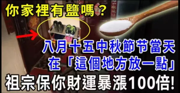八月十五中秋節必做!在家放點鹽,祖宗保你財運暴漲100倍~
