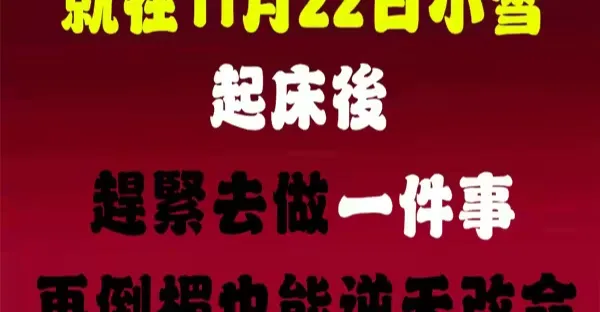 60年一次,就在11月22日「小雪」 起床後趕緊去做一件事,再倒楣也能逆天改命!乞丐也能變億萬富翁!