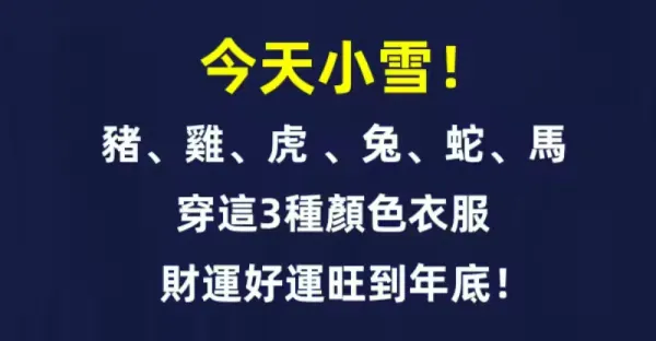 今天小雪「豬、雞、虎、兔、蛇、馬」穿這3種顏色衣服,財運好運旺到年底!