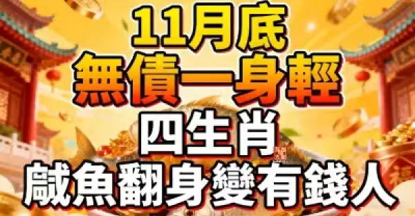 11月底 無債一身輕,四生肖 鹹魚翻身變有錢人!