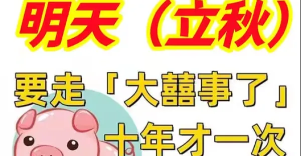 六大生肖:明天(立秋)開始要走「大囍事了」,十年才一次,快接住