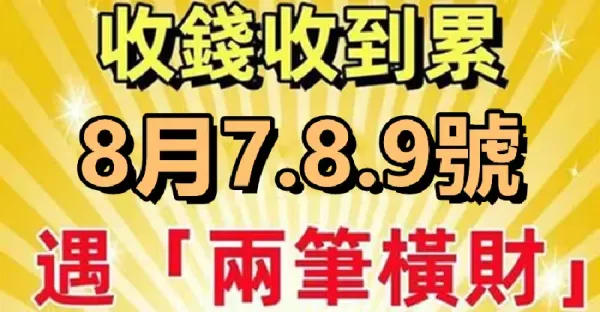 收錢收到累!8月7.8.9號遇「兩筆橫財」五大生肖日子一順百順