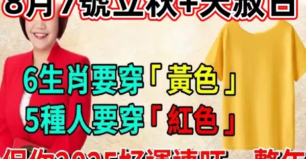8月7號立秋+天赦日,6生肖要穿黃色,5種人要穿紅色,保你平平安安災難消除!2025好運連旺一整年