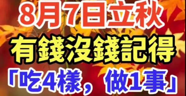 8月7日立秋,有錢沒錢記得「吃4樣,做1事」安康入秋!