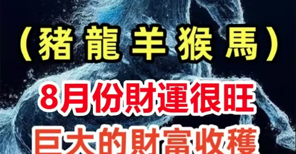 (豬 龍 羊 猴 馬)8月份財運很旺,巨大的財富 收穫!