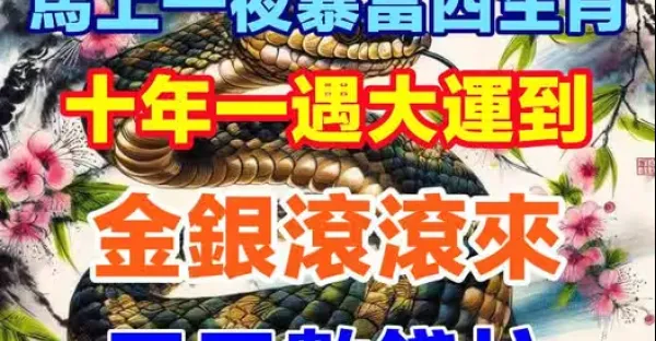 馬上一夜暴富「四生肖」不出5天,十年一遇大運到,金銀滾滾來,天天數錢忙!