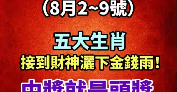 偷偷告訴你:8月2日 「六大生肖 」運勢極高 「 財運旺到爆 」
