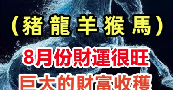 (豬 龍 羊 猴 馬)8月份財運很旺,巨大的財富 收穫