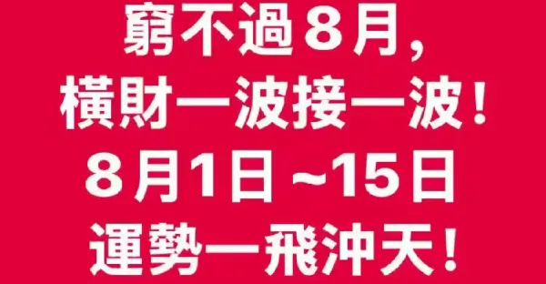 窮不過8月,橫財一波接一波!8月1日~15日運勢一飛沖天!