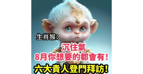 生肖猴 8月你想要的都會有!六大貴人登門拜訪!