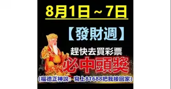 8月1日 到 7日【發財周】趕快去買彩票,必中頭獎的生肖