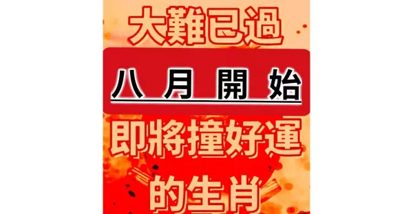 「 大難已過 」 八月開始 即將撞好運的生肖