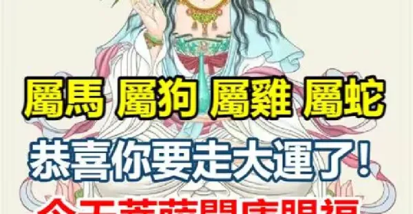 【屬馬女 屬狗女 屬雞女 屬蛇女】恭喜你要走大運了!今天菩薩開庫賜福,打開此文好運財運統統接走!