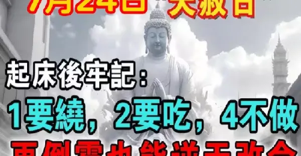 非常靈驗!7月24號「天赦日」,起床後牢記:1要繞,2要吃,4不做,再倒霉也能逆天...改命,讓你從年頭旺到年尾!
