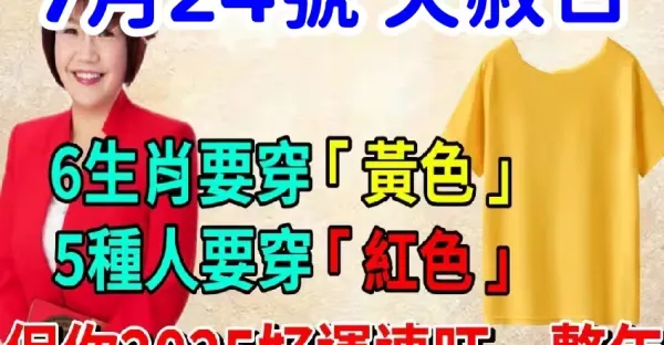 算命師說:7月24號天赦日!6生肖要穿黃色,5種人要穿紅色,保你平平安安災難消除!2025好運連旺一整年!