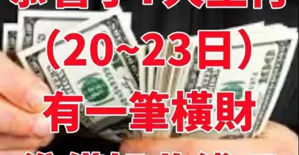 恭喜了7大生肖,在未來三天( 7月20~23日)即將有一筆橫財!準備好收錢吧