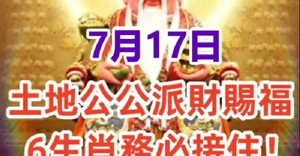 7月17日:土地公公派財賜福,6生肖務必接住!接了就有頭獎中