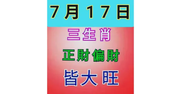 「 7月17日 」 三生肖 正財偏財「皆大旺」