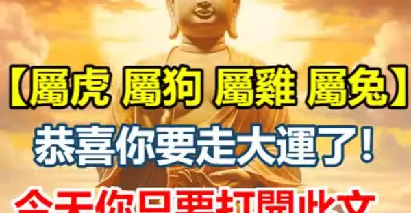 【屬虎 屬狗 屬雞 屬兔】恭喜你要走大運了!今天你只要打開此文,下半年一切貧窮、霉運、疾病統統送走~!