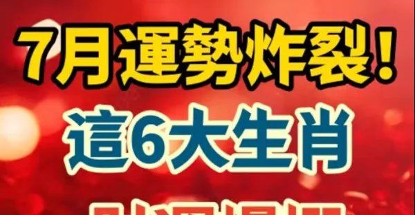 7月運勢炸裂!這6大生肖財運爆棚,第1名「躺贏」!