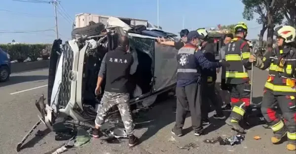 小貨車輪胎變「血滴子」! 飛砸遊覽車釀4車追撞1亡