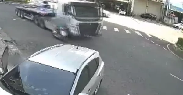 驚險!78歲女騎士為閃路邊違停車輛 遭大貨車擦撞險卷車底