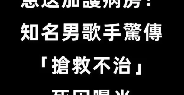 晚間快訊/急送加護病房!知名男歌手驚傳「搶救不治」死因曝光!