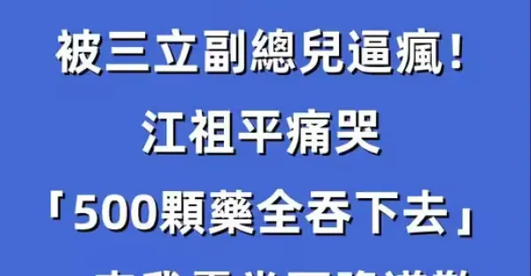 快訊/被三立副總兒逼瘋!江祖平痛哭「500顆藥全吞下去」:來我靈堂下跪道歉!