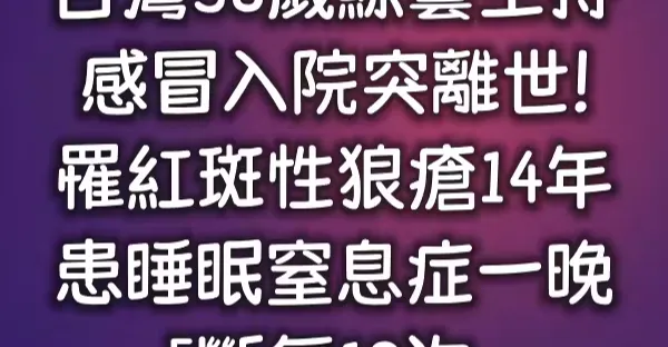 台灣38歲綜藝主持,感冒入院突離世!罹紅斑性狼瘡14年 , 患睡眠窒息症一晚「斷氣19次」