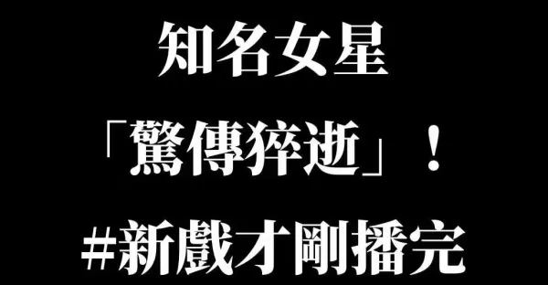 晚間快訊/知名女星「驚傳猝逝」! #新戲才剛播完