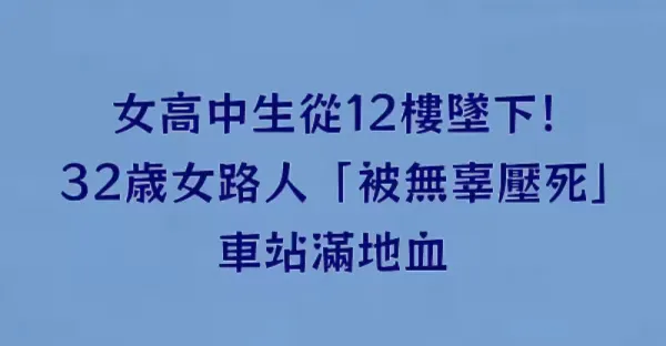 女高中生從12樓墜下!32歲女路人「被無辜壓死」車站滿地血~