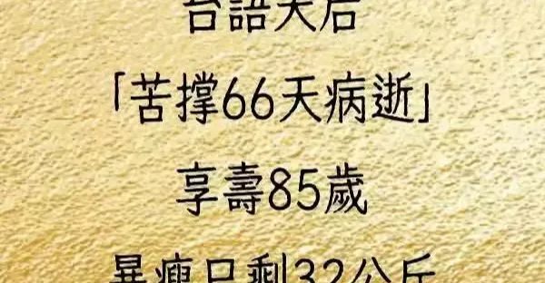 台語天后「苦撐66天病逝」享壽85歲,暴瘦只剩32公斤
