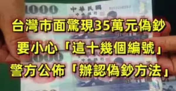 台灣市面驚現35萬元偽鈔,要小心「這十幾個編號」!警方公布「辦認偽鈔方法!」