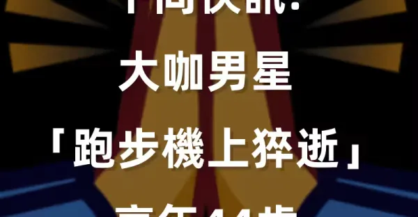 午間快訊/大咖男星「跑步機上猝逝」享年44歲