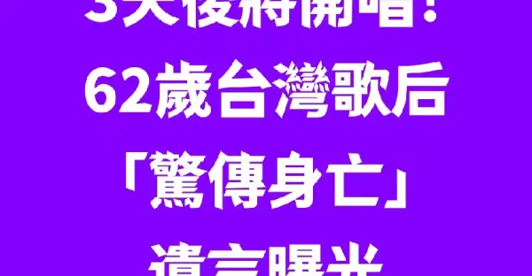 3天後將開唱!62歲台灣歌后「驚傳身亡」遺言曝光!