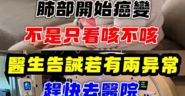肺部開始癌變! 不是只看「咳不咳」而已,醫生告誡「若有2異常」: 趕快去醫院