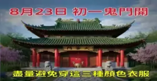 8/23號鬼門開 儘量避免穿三種顏色衣服 以免招惹不好的氣場 影響自身運勢