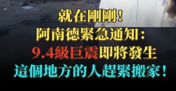 就在剛剛!阿南德緊急通知:9.4級巨震即將發生,這個地方的人趕緊搬家!!
