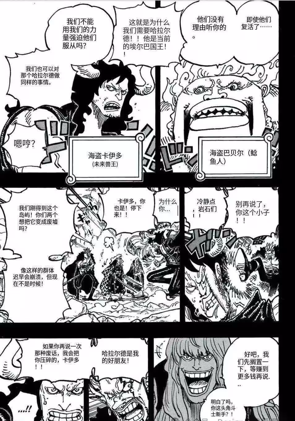 凱多也加入洛克斯海賊團了,還有一位魚人族,洛克斯正在公布一個大計劃,準備尋找兩個神級惡魔果實,其中一個就在艾爾巴夫。洛克斯要讓哈拉爾德國王吃掉這個惡魔果實,不過哈拉爾德國王一直拒絕洛克斯,凱多就說強迫他加入洛克斯海賊團,結果被洛克斯揍了一腳。