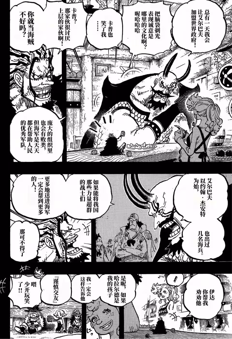 巨人加入海軍是無法接受了,很多海軍都不願意接納他們,畢竟巨人的身軀太大,一不小心就會壓死普通人。戰國,卡普,阿鶴中將等人正在跟鋼骨空討論這件事,他們認識巨人可以加入海軍,哈拉爾德國王要是被洛克斯挖走就麻煩了,鋼骨空說這件事必須要得到世界政府的准許。