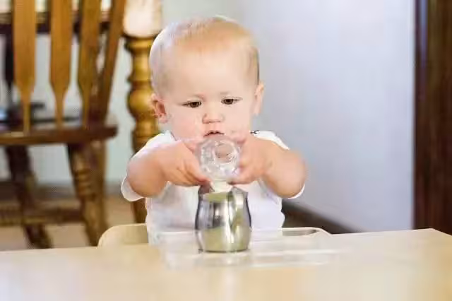 2、倒水訓練。讓孩子學習把水倒入某一容器中,儘量不要把水漏出。