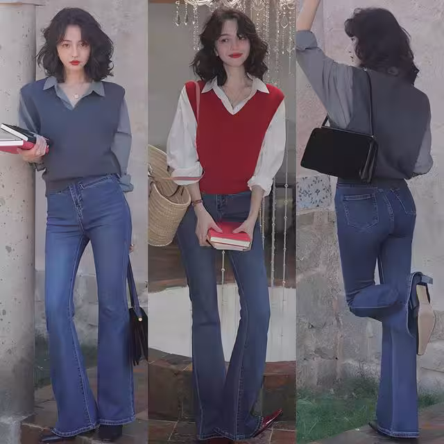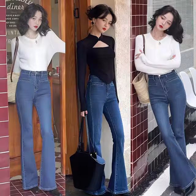 好身材都是穿出來的,一條「上窄下寬」的牛仔微喇褲,就能輕鬆優化下身曲線,刻畫出腰臀比,提升好氣質