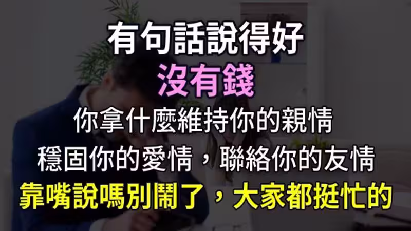 沒有錢,你拿什麼維持你的親情、穩固你的愛情、聯絡你的友情?靠嘴說嗎?別鬧了,大家都挺忙的 !