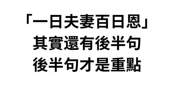 「一日夫妻百日恩」,其實還有後半句,後半句才是重點!
